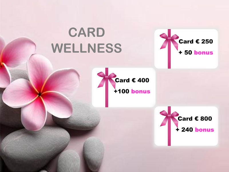 Per esempio: Scegliendo la Card Premium, offri un valore di €1.040 spendibile su tutti i nostri servizi (epilazione laser, trattamenti viso e corpo, e altro ancora) al costo di soli €800.
